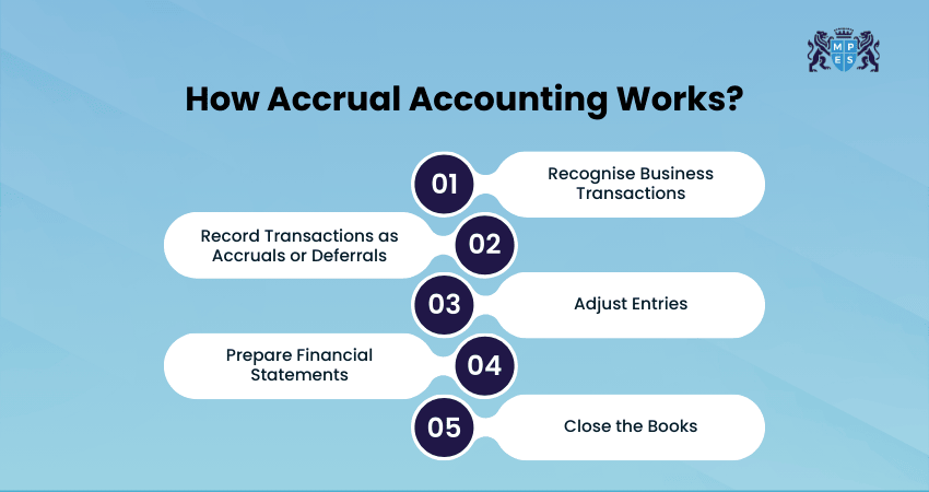 Now that you’ve learned What is Accrual Accounting and its importance, it’s time to learn how it works. Accrual Accounting follows a structured process to ensure accurate financial reporting. The key steps include the following: