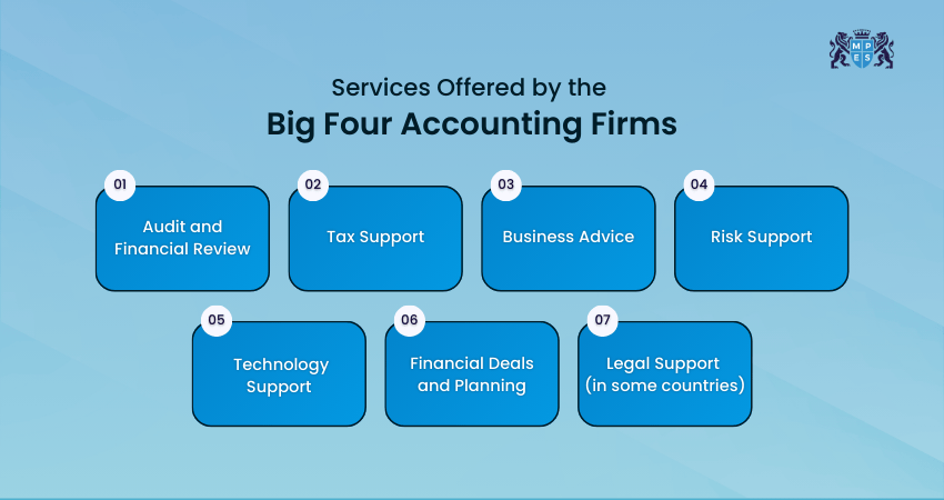 The Big 4 Accounting Firms offer many services to help businesses manage their money, follow rules and grow. While they are well known for checking company accounts, they now also support organisations in many other areas.