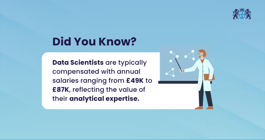 According to Glassdoor, a Data Scientist can earn an average annual salary from £49K to £87K.