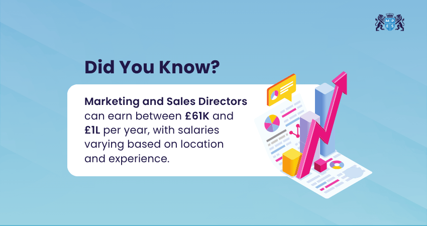 According to Glassdoor, the Marketing and Sales Director can earn an average annual salary from £61K to £1L.