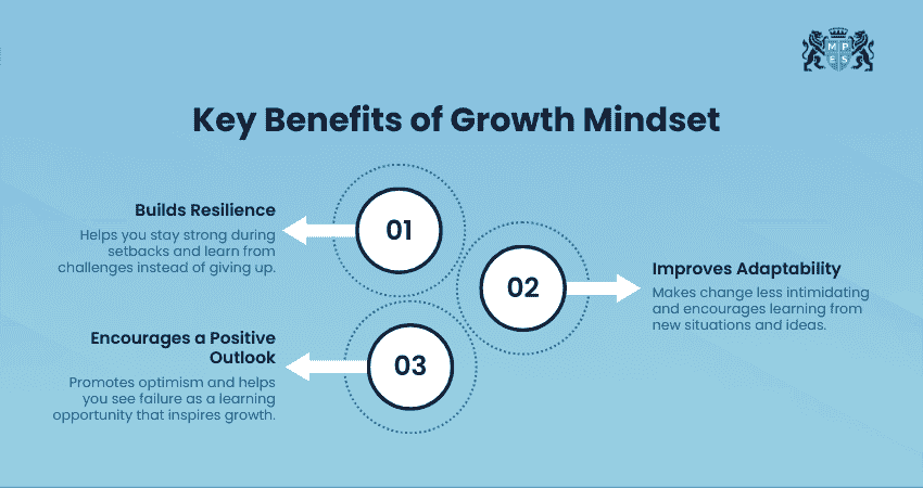 Whether you are at school, work, or in daily life, adopting a Growth Mindset brings valuable benefits that last a lifetime. Let’s look at some important benefits.