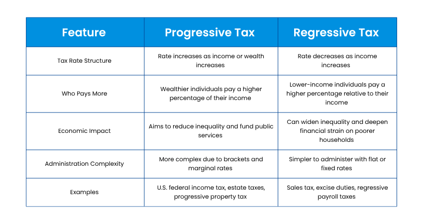 Here are the key differences between Progressive Tax and Regressive Tax: